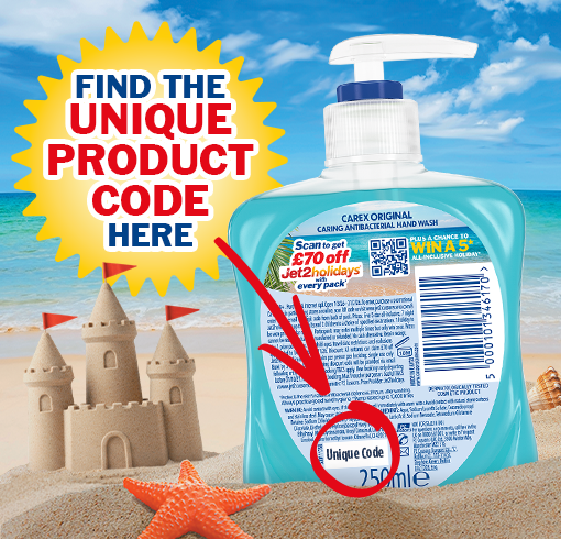 - To enter the prize draw, purchase a promotional pack of Carex and scan the QR code on-pack to be taken to promotional microsite www.jet2.cussonscarex.com. The entrant must complete the entry form with full name, email and enter the eight digit code from the back of the qualifying Carex pack as proof of purchase to enter prize draw to win one of five 5-star all-inclusive holidays.